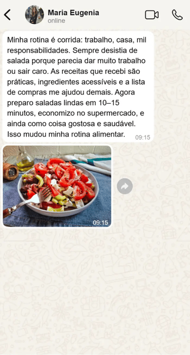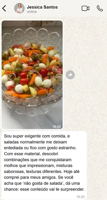 Esse material contém receitas que agradam qualquer tipo de paladar, até mesmo de pessoas que não estão habituadas com saladas na rotina. e você tem um “paladar infantil”, é aqui que você vai encontrar receitas que você consegue comer sem medo e sem ânsia.